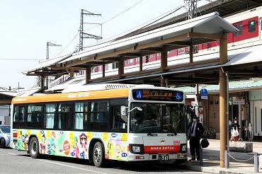 加茂駅行き。後輪が巻き込み防止のカバーで囲まれているのは親会社の近鉄バスと同じ。(2007年7月31日 JR奈良駅) 2013年8月記 |