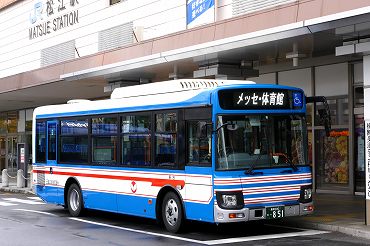 | 一畑バスの中型車。一畑電車の松江しんじ湖温泉に向かいます。(2009年8月26日 松江駅) 2013年10月記 |