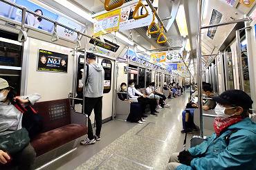 南北線5000形車内。「優先席」ではなく、お年寄りなどの「専用席」となっているので健常者はかなり混んでいても専用席には座らず、かえって混雑しているように感じます。(2015年11月9日) 2015年11月記 |