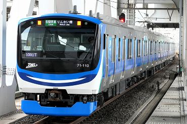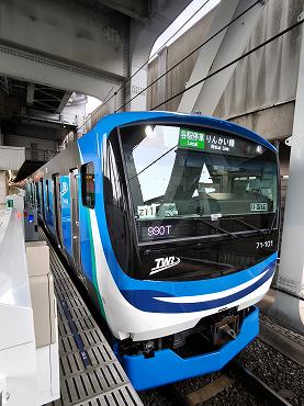 70-000形。社名は「臨海」と漢字ですが、線名は「りんかい線」。 (2013年4月27日 大崎) 2013年4月記 |