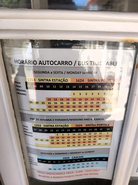 シントラ地域のロカ岬。時刻表は15分間隔のダイヤ。(2025年9月9日 ロカ岬) 2025年10月記 |