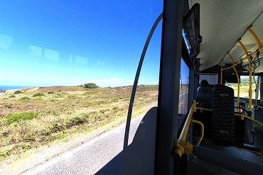 | シントラ地域のドイツ製路線バス1253系統に乗ってコラレスからロカ岬へ向かっています。大西洋が見えてきました。(2025年9月9日) 2025年10月記 |