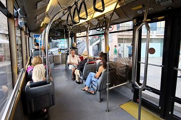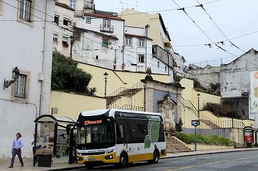 | リスボンの充電式路線バスに乗ってカイスドソドレからサンペドロアルカンテラへ向かっています。この車両はポルトガル製ですが、日本技術が採用されています。(2025年9月10日) 2025年10月記 |