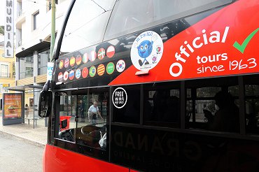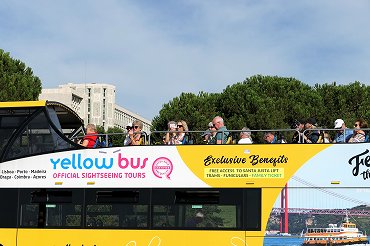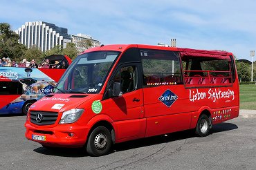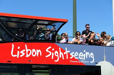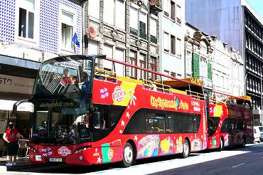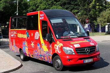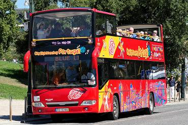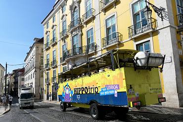 リスボンの観光バス。この車両は道の狭い旧市街を回るもので、後部はオープンエア。(2025年9月6日 マルケスデポンバル) 2025年10月記 |