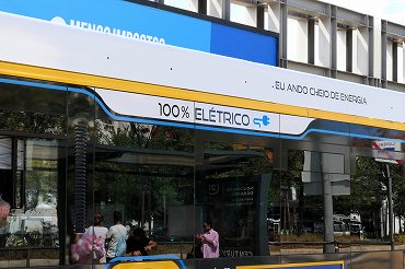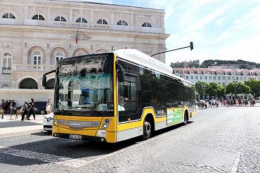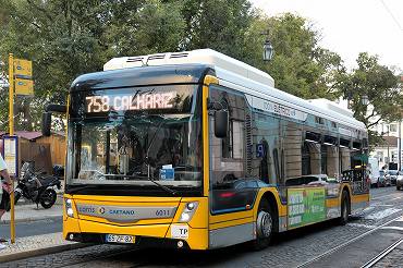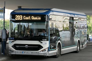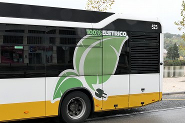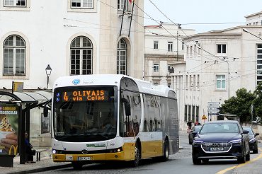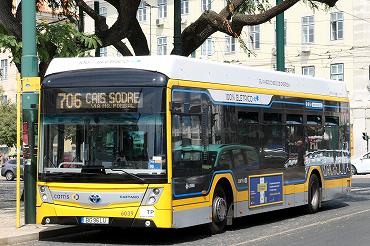 | リスボンの充電式路線バスで、ポルトガル製ですが、日本技術が採用されています。(2025年9月4日 カイスドソドレ) 2025年10月記 |