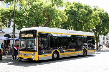 リスボンの充電式路線バスで、ポルトガル製ですが、日本技術が採用されています。(2025年9月4日 ロシオ広場) 2025年10月記 |