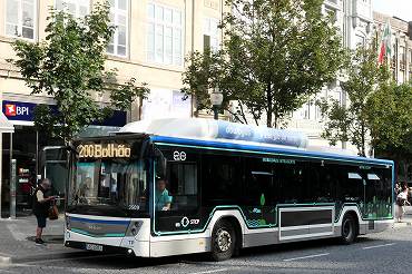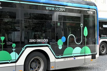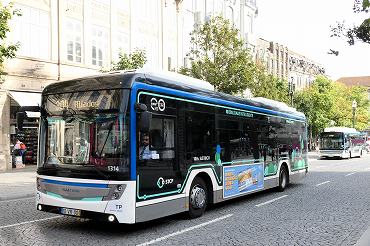 ポルトの充電式路線バス。ポルトガル製ですが、日本技術が採用されています。(2025年9月12日 アリアドス通り) 2025年10月記 |