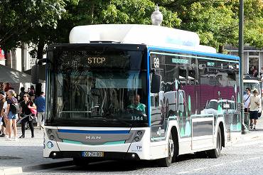 | リスボンのドイツ製天然ガス路線バス。(2025年9月10日 レスタウラドーレス広場) 2025年10月記 |
