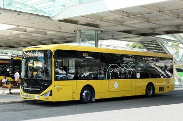 リスボンの充電式路線バスで、ポルトガル製ですが、日本技術が採用されています。(2025年9月4日 カイスドソドレ) 2025年10月記 |