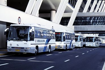 | 空港バスはいろいろな行先があります。(2000年4月17日 浦東空港) 2026年2月記 |