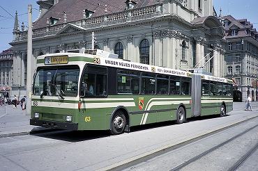 ベルンの連接トロリー路線バス。(2000年7月2日 ベルン駅) 2025年12月記 |
