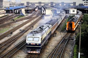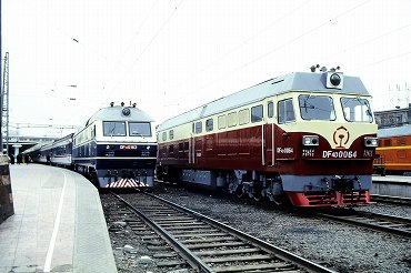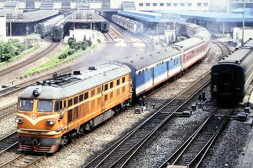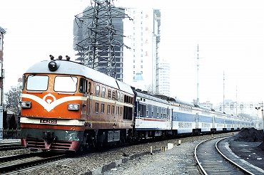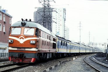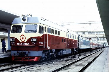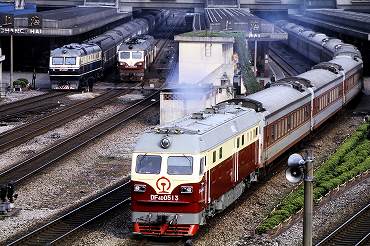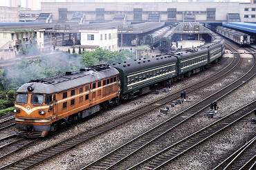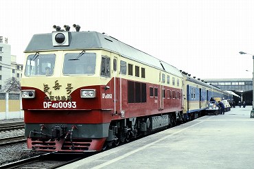 | 東方紅3型ディーゼル電気機関車の引く列車が出発。(2000年4月13日 大連) 2025年12月記 |