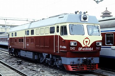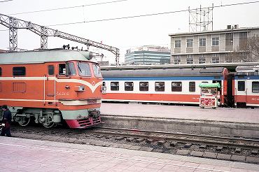 夜行列車に乗って大連から北京へ到着。到着時は機関車が東風4B型ディーゼル電気機関車に代わっていました。(2000年4月14日 北京) 2025年12月記 |