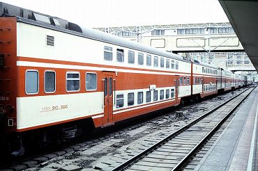 | 「新曙光」は両端が動力車が2階建て客車を挟み込んだ編成。(2000年4月16日 上海) 2025年12月記 |