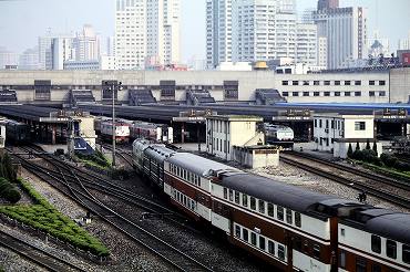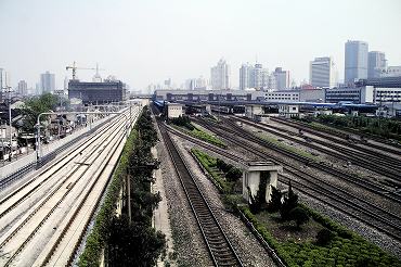 上海駅。左の電化路線は地下鉄。(2000年4月16日 上海) 2025年12月記 |