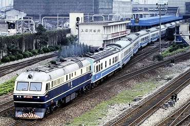 | 東風11型ディーゼル電気機関車の引く列車。(2000年4月16日 上海) 2025年12月記 |
