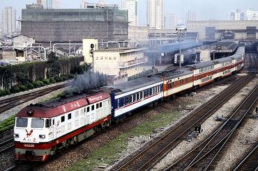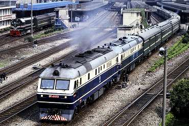 東風11形ディーゼル電気機関車の引く上海行き。(2000年4月14日 北京) 2025年12月記 |