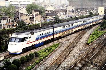 「新曙光」は両端が動力車が2階建て客車を挟み込んだ編成。(2000年4月16日 上海) 2025年12月記 |