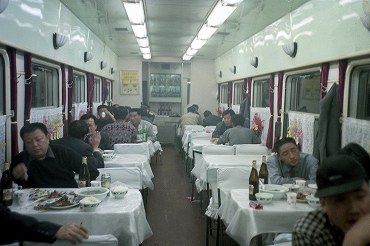 夜行列車に乗って大連から北京へ向かっています。食堂車。(2000年4月13日) 2025年12月記 |