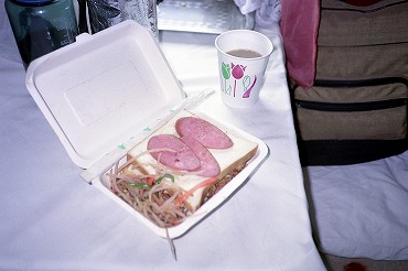 夜行列車に乗って大連から北京へ向かっています。車内販売の朝食10CNY。(2000年4月14日) 2025年12月記 |