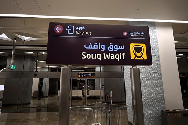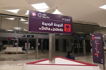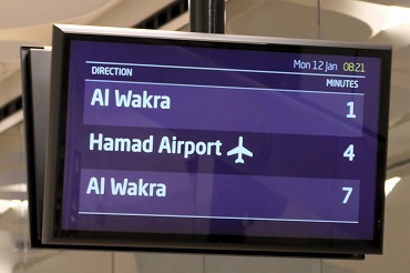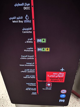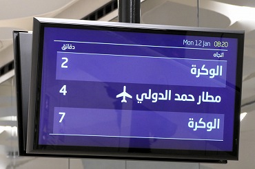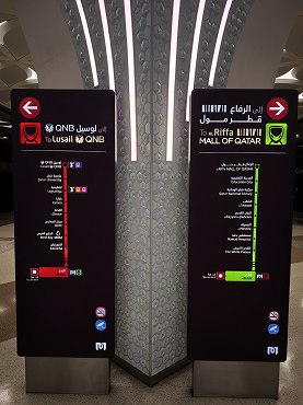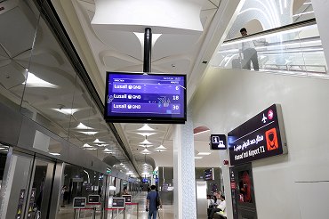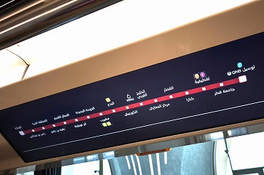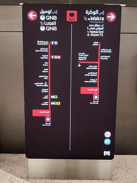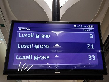 レッドラインの南方面行きはアルワクラ行きとハマド国際空港行きが交互に運転。英語とアラビア語が交互に表示。(2026年1月12日 ムシェレブ) 2026年1月記 |