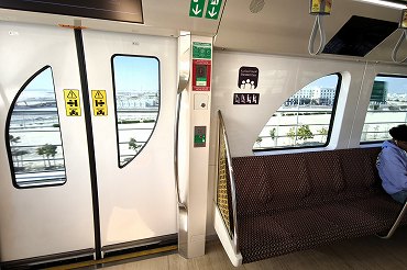 レッドラインに乗ってハマド国際空港からムシェイレブへ向かっています。車両の連結部で、隣の車両はファミリー用。(2026年1月12日 ハマド国際空港) 2026年1月記 |