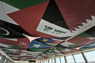 レッドラインの北の終着駅はルサイルQNB駅。天井が各国の国旗。(2026年1月7日 ルサイルQNB) 2026年1月記 |
