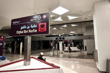 レッドラインのオクバイブンナーファ駅はハマド国際空港行きとアルワクラ方面の分岐駅。(2026年1月10日 オクバイブンナーファ) 2026年1月記 |