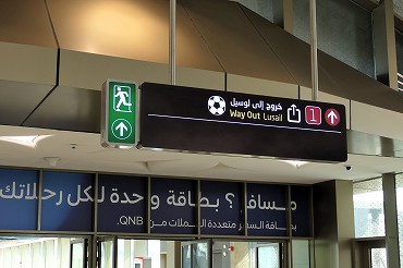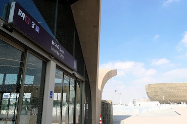 レッドラインの北の終着駅はルサイルQNB駅。サッカースタジアムの最寄駅で、その出口にはサッカーボールのマーク。(2026年1月7日 ルサイルQNB) 2026年1月記 |