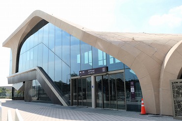 ゴールドラインのスークワーキフ駅。左奥にカルチャーセンター。(2026年1月9日 スークワーキフ) 2026年1月記 |