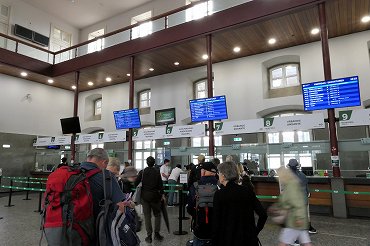 コインブラの長距離列車発着駅はコインブラB駅といって町はずれにあり、コインブラB駅から街の中心のコインブラA駅へ無料バスで到着。(2025年9月7日 コインブラA駅) 2025年10月記 |