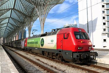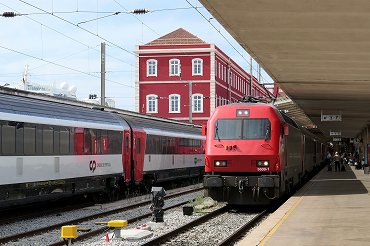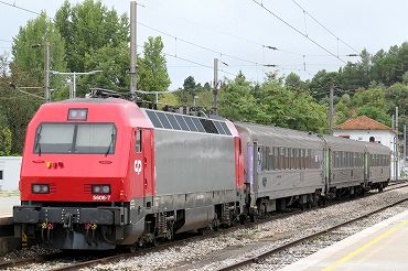 ドイツ製電気機関車が引くギマランイス行きインターシティ。(2025年9月5日 サンタアポローニャ) 2025年10月記 |
