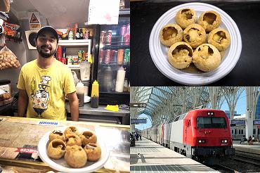 オリエンテ駅にあったインド料理のパニプリ3EUR(540円)。店主はネパール人。右下はドイツ製電気機関車が引くインターシティ。(2025年9月15日 オリエンテ) 2025年10月記 |