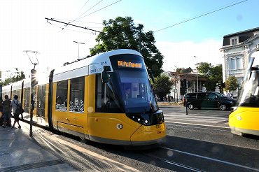 プラダ通りを行く15系統はコンセイサン通りと交差するところで旧型トラムの路線と直角に交わります。(2025年9月9日) 2025年10月記 |