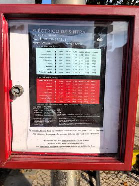 シントラトラムの時刻表。平日時は1両で運行、週末は2両で運行のようです。(2025年9月9日) 2025年11月記 |