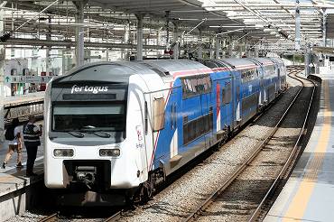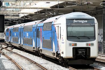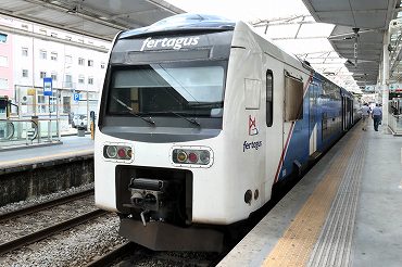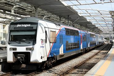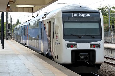 | フェルタグスのフランス製2階建て電車で運行するセトゥーバル行き。(2025年9月7日 ローマ・アレエイロ) 2025年11月記 |