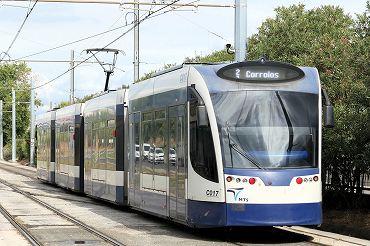 | 南テージョ高速輸送システムのドイツ製トラムで運行の1系統コロイオス行きに乗ります。(2025年9月7日 ベントコンサル) 2025年11月記 |