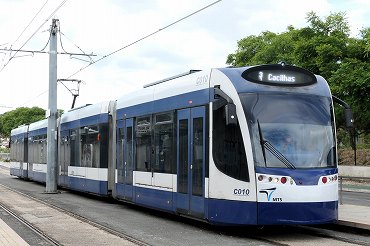 南テージョ高速輸送システムのドイツ製トラムで運行の2系統コロイオス行き。(2025年9月7日 プラガル) 2025年11月記 |