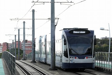 | 南テージョ高速輸送システムのドイツ製トラムで運行の3系統大学行き。この駅は東西方向と南方面の接続駅。(2025年9月7日 ベントコンサル) 2025年11月記 |