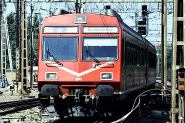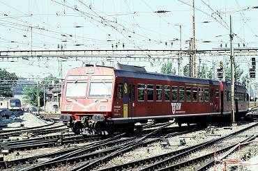 | ツェントラル鉄道の機関車が推したり引いたりする客車列車。先頭は制御客車。(2003年6月27日 ザルネン) 2021年5月記 |