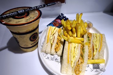 サンドイッチのセットが20QAR(895円)。(2026年1月9日) 2026年1月記 |