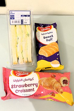 宿の近くのスーパーマーケットで三角サンドイッチ3.5QAR。パンはそれぞれ1.5QAR。(2026年1月10日) 2026年1月記 |