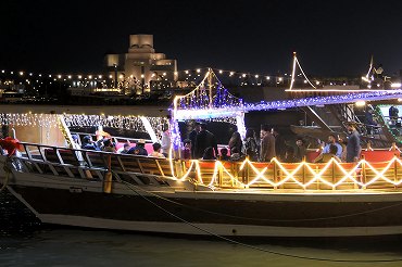 アルコーニッシュウォーターフロントを発着する遊覧船。奥はイスラム美術館。(2026年1月12日) 2026年1月記 |