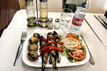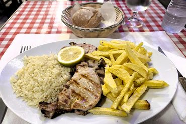 | 宿界隈にあった右上の写真の店で8EUR、水1.2EUR、計9.2EUR(1654円)。(2025年9月6日) 2025年10月記 |