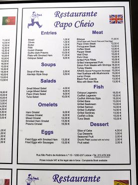カモエンス広場近くの左の写真の店で10.9EUR、水1.5EUR、計12.4EUR(2232円)。(2025年9月8日) 2025年10月記 |