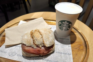 グレリゴス教会界隈にあったスターバックスでハムサンド3.2EUR、カプチーノ3.2EUR、計5.6EUR(1005円)。(2025年9月11日) 2025年11月記 |