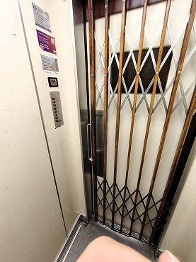 | ドミトリー・アリアドスの入居するビルのエレベーターはドアが手動。(2025年9月11日) 2025年11月記 |