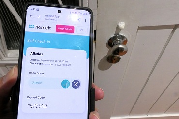 ドミトリー・アリアドス。宿の入口の鍵はスマホで操作。外から入るときだけでなく、中から出るときも同じ操作。(2025年9月12日) 2025年11月記 |