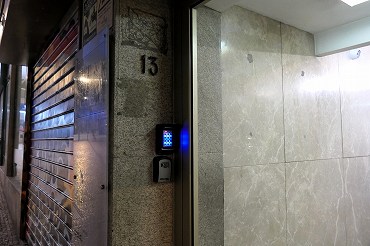 | ドミトリー・アリアドスが入居しているビルへ入る場合は暗証番号を中央のパネルに入力。(2025年9月12日) 2025年11月記 |