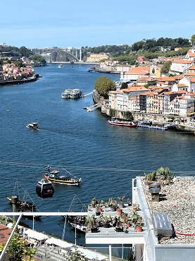| ドンルイス1世橋から見た西側。ドゥエロ川の遊覧船。(2025年9月12日) 2025年11月記 |